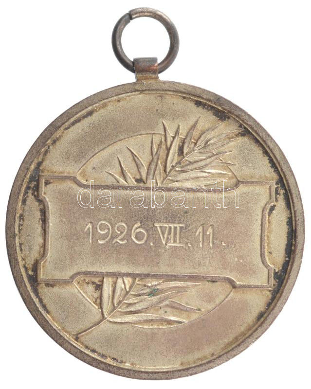 1926. ‘Usetty Ferencz Emlékdíj’ kétoldalas, ezüstözött bronz díjérem, az FVSK (Ferencvárosi Vasutas SK) címerével, füllel, ‘1926. VII. 11.’ gravírozással (37mm) T:2 patina