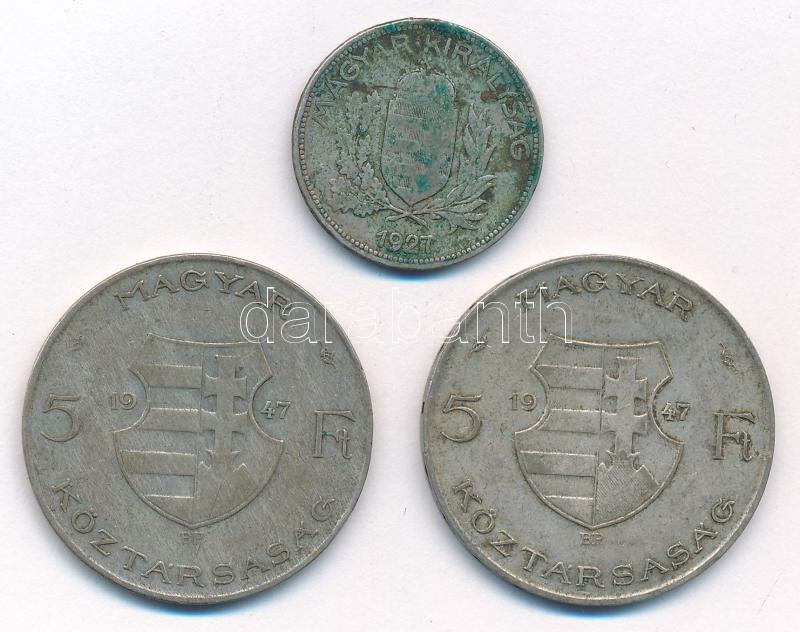 1927. 1P Ag + 1947. 5Ft Ag ‘Kossuth’ (2x) T:2- patina, ph
