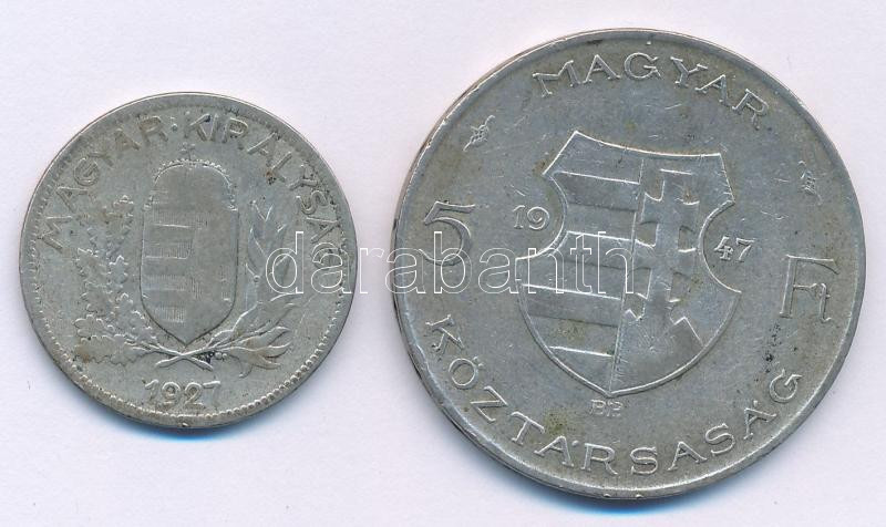 1927. 1P Ag + 1947. 5Ft Ag ‘Kossuth’ T:F patina Adamo P6, F8.1