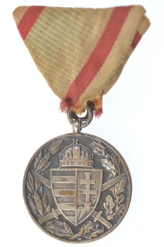 1929. ‘Magyar Háborús emlékérem kardokkal, sisakkal’ ezüstözött bronz kitüntetés mellszalagon 2 patina, kopott ezüstözés Hungary 1929. ‘Hungarian Commemorative War Medal with swords and a helmet’ silver-plated bronze decoration with ribbon C:XF patina, wo