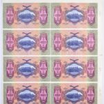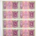 1930. 100P 8db-os vágatlan MINTA ÍV, ‘1943. III. 17.’ dátummal, ‘PARAFA’ kísérleti nyomat jelzéssel , látható illesztőkerettel. A bankjegyek mind ‘007506’ sorszámmal, de sorszámkövető sorozatszámokkal ‘E 647 – E 654’ T:I- kissé