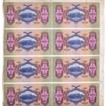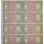1930. 100P 8db-os vágatlan MINTA ÍV, hátlapi teljes és előlapi fázisnyomattal. A bankjegyek mind ‘089952’-es sorszámmal és ‘E 807 – E 814’ sorszámkövető sorozatszámmal T:III R! / Hungary 1930. 100 Pengő in a SPECIMEN SHEET of 8, full backside print and fr