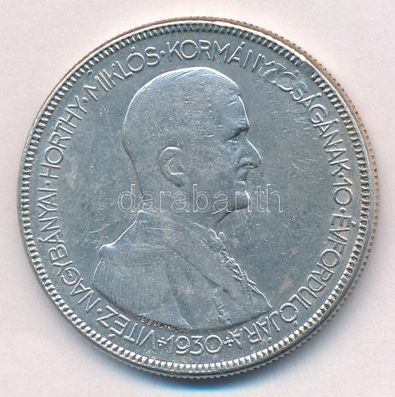 1930. 5P Ag ‘Horthy jobbra’ hajas T:XF köriratban ü. Adamo P8<a href="https://www.darabanth.com/hu/gyorsarveres/438/kategoriak~Numizmatika/Magyar-es-magyar-verdejelu-fem-es-ezustpenzek~1500008/1930-5P-Ag-Horthy-jobbra-hajas-TXF-koriratban-u-Adamo-P8