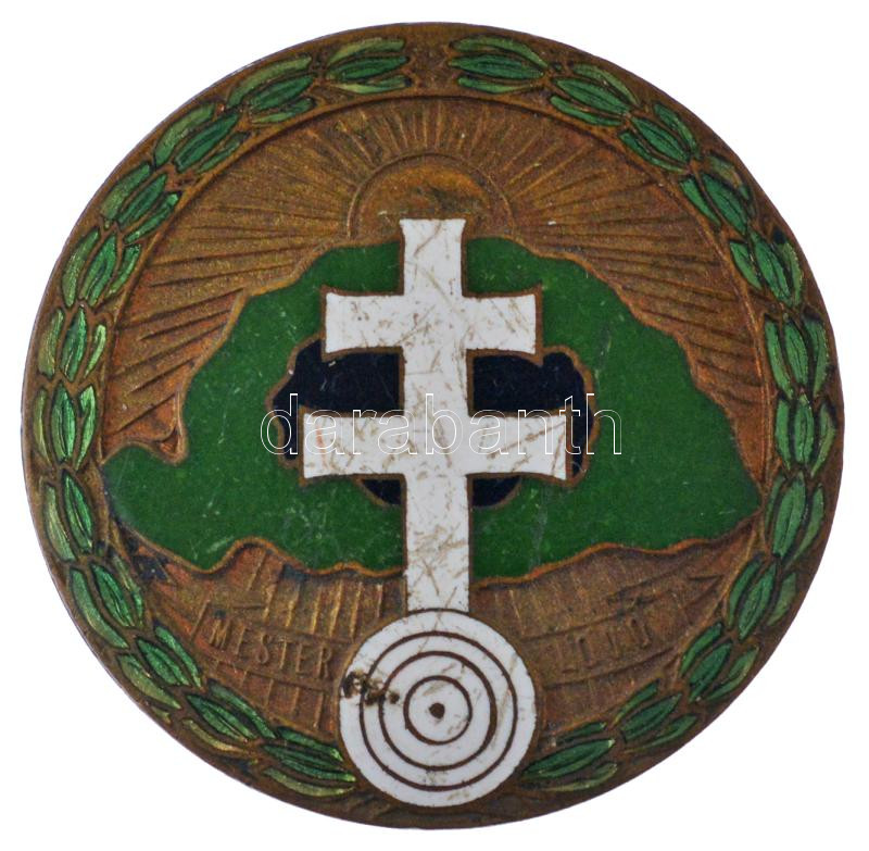 ~1930. ‘Mester lövő’ zománcozott, bronz irredenta jelvény (40mm) T:XF,VF zománchiba Hungary ~1930. ‘Mester lövő (Master Shooter)’ enamelled bronze irredent badge (40mm) C:XF,VF enamel error