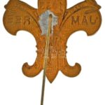 1933. „Jamboree” zöld-fehér zománcozott cserkész kitűző (37x32mm) T:XF kis zománchibák / Hungary 1933. „Jamboree” white-green enamelled Scouting badge with replaced pin (37x32mm) C:XF small enamel errors