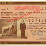 1933. ‘Nyomorék Gyermekek Országos Otthona’ sorsjegy 1P értékben, felülbélyegzésekkel, ‘11212’ sorszámmal T:III széleken kis szakadádok / Hungary 1933. ‘National Home for Crippled Children’ lottery ticket with the value of 1 Pengő, with overprints and ’11