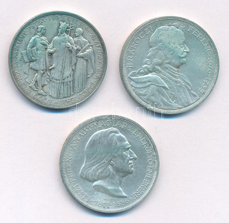 1935. 2P Ag ‘Pázmány’ + 1935. 2P Ag ‘Rákóczi’ + 1936. 2P Ag ‘Liszt Ferenc’ ‘Pázmány-sor’ T:1- patina Adamo P7.1, P7.2, P7.3