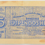 1936. Kecskeméti Bevásárlási Központ értesítése 5P hitel keretről, kék színben, hátoldalán bélyegzéssel T:VF folt, kis sarokhiány / Hungary 1936. Announcement of the Kecskeméti Bevásárlási Központ’s credit limit in 5 Pengő worth, blue print with overprin