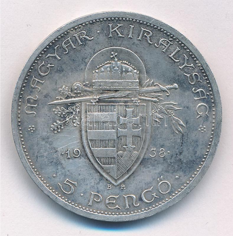 1938. 5P Ag ‘Szent István’ T:1- patina Adamo P8.1<a href="https://www.darabanth.com/hu/gyorsarveres/417/kategoriak~Numizmatika/Magyar-es-magyar-verdejelu-fem-es-ezustpenzek~2000008/1938-5P-Ag-Szent-Istvan-T1-patina-Adamo-P81~II2625671/?utm_source=af