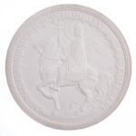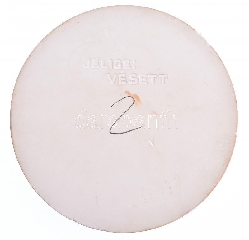 ~1938. ‘SZENT ISTVÁN KIRÁLY HALÁLÁNAK 900. ÉVFORDULÓJA EMLÉKÉRE 1038-1938’ Feltehetően az 1938-as Szent István-évhez kötődő 5 Pengős érme tervpályázatára készült gipsz hátlapi nagyminta. A tervezeten Szent István balra néző lovas ábrázolása. Göröntsér Gre