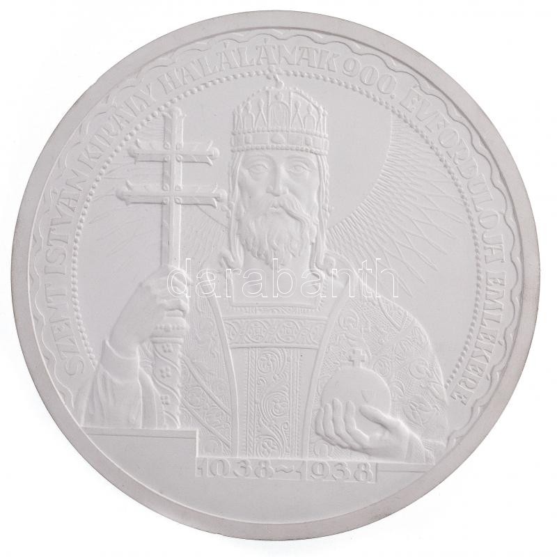 ~1938. ‘SZENT ISTVÁN KIRÁLY HALÁLÁNAK 900. ÉVFORDULÓJA EMLÉKÉRE 1038-1938’ Feltehetően az 1938-as Szent István-évhez kötődő 5 Pengős érme tervpályázatára készült gipsz hátlapi nagyminta, Göröntsér Greff Lajos (1888-1976) pályaműve, hátoldalon ‘JELIGE: VÉS