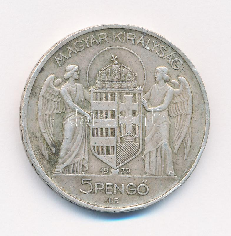 1939. 5P Ag ‘Horthy balra’ T:2,2- patina, ph, karc Adamo P8.2<a href="https://www.darabanth.com/hu/gyorsarveres/435/kategoriak~Numizmatika/Magyar-es-magyar-verdejelu-fem-es-ezustpenzek~1000008/1939-5P-Ag-Horthy-balra-T2-2-patina-ph-karc-Adamo-P82~II