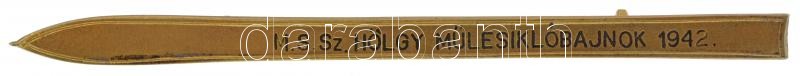 1942. ‘M.S.Sz. Hölgy Műlesiklóbajnok 1942’ a Magyar Sí Szövetség síléc formájú bronz jelvénye, hátlapon ‘BERÁN N BPEST’ és ‘BN’ gyártói jelzéssel (6x89mm) T:1-,2<a href="https://www.darabanth.com/hu/gyorsarveres/422/kategoriak~Numizmatika/Sportdijak