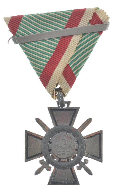 1942. ‘Tűzkereszt I. fokozata sebesülési pánttal’ hadifém kitüntetés eredeti mellszalagon, sebesülési pánttal T:2 Hungary 1942. ‘Fire Cross, 1st Class with woud strap’ war metal decoration on original ribbon with wound strap C:XF NMK 444.<a href="h