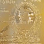 1943. 1000P ‘Szálasi-kiadás’ kiadatlan bankjegy aranyozott Cu nyomólemez gyártásához készített véset pozitív lemeze (magaslemez), Horváth Endre tervei alapján, üvegezett keretben (86x179mm) R! / Hungary 1943. 1000 Pengő ‘Szálasi