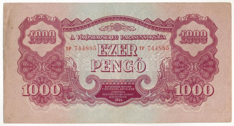 1944. 1000P ‘A Vörös Hadsereg Parancsnoksága’ ‘TP 744885’ T:III kopott szélek és sarkak, de erős papír Adamo P48