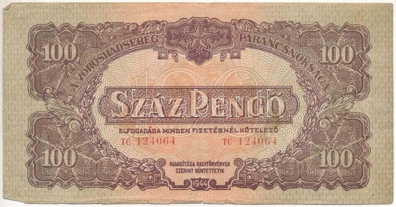 1944. 100P ‘TC 124064’ ‘A Vöröshadsereg Parancsnoksága’ T:III kis szakadások Adamo P47