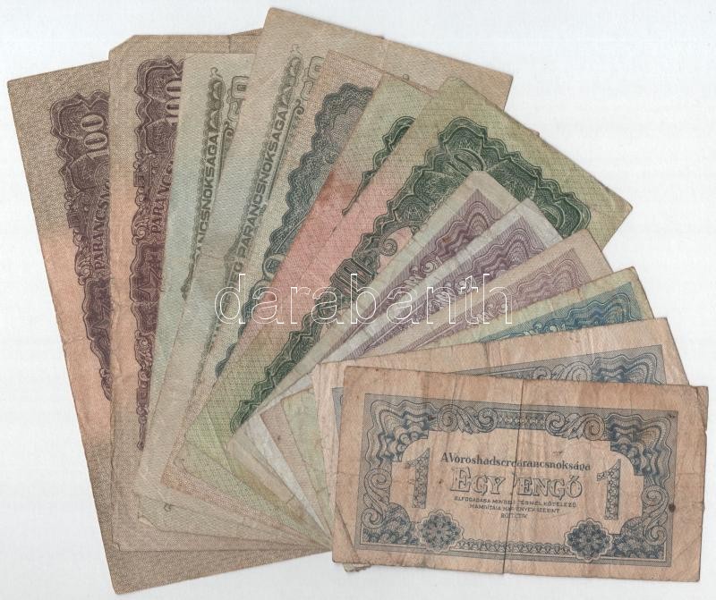 1944. 1P-100P ‘A Vöröshadsereg Parancsnoksága’ (13db, 7xklf) T:III,III-<a href="https://www.darabanth.com/hu/gyorsarveres/418/kategoriak~Numizmatika/Magyar-bankjegyek~2000007/1944-1P-100P-A-Voroshadsereg-Parancsnoksaga-13db-7xklf-TIII-III-~II2634700