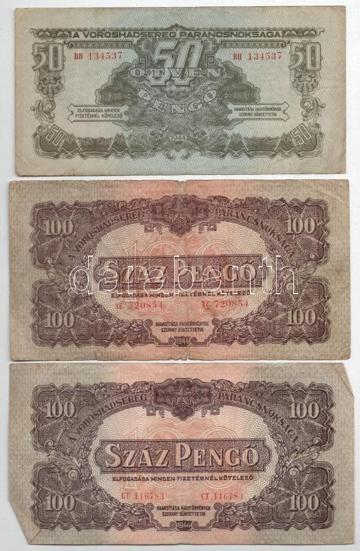 1944. 1P-50P (6xklf) + 100P (2x) ‘A Vörös Hadsereg Parancsnoksága’ T:III,III- fo.