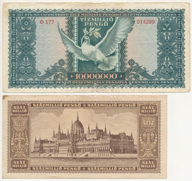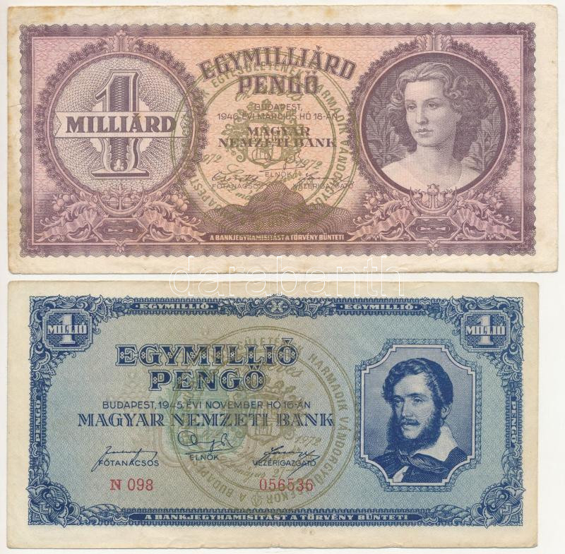 1945. 1.000.000P + 1945. 10.000.000P + 1946. 100.000.000P + 1946. 1.000.000.000P mind ‘Budapesti Éremgyűjtők Egyesületének harmadik vándorgyűlésekor Székesfehérvár 1972’ felülbélyegzéssel T:III Adamo FO32.2.7, FO32.1.13, FO32.2.11, FO32.2.9<a href="