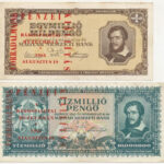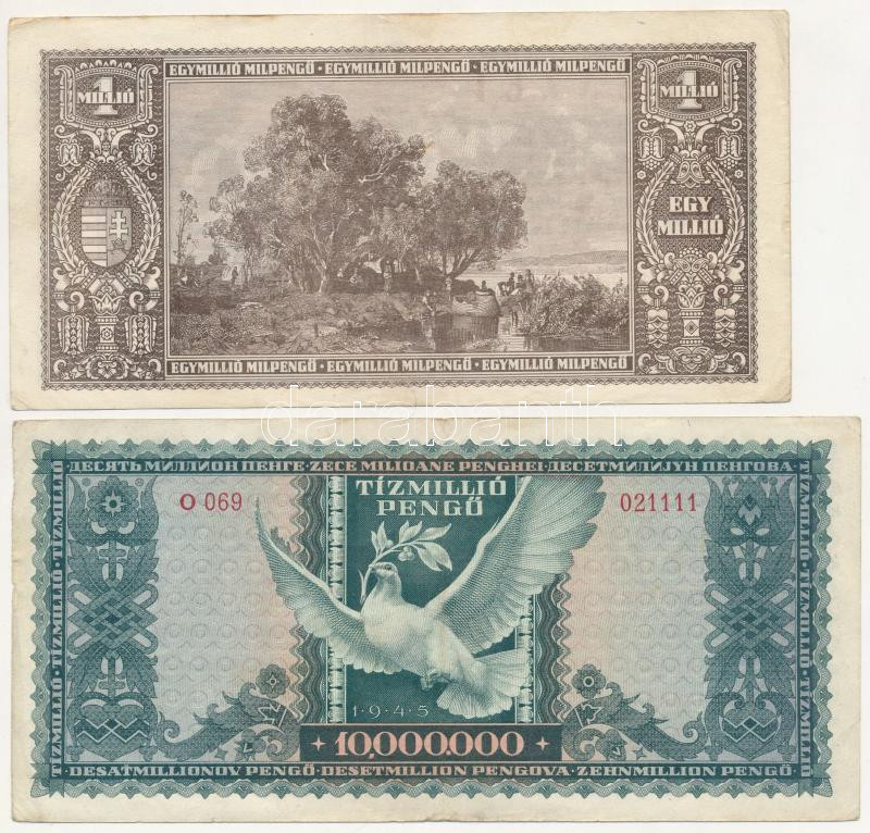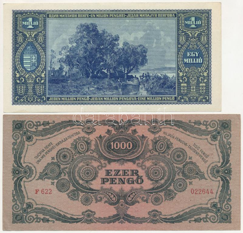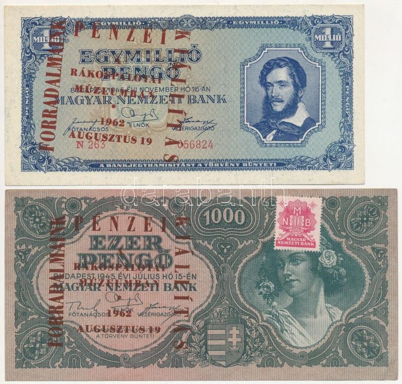 1945. 1000P + 1945. 1.000.000P + 1945. 10.000.000P + 1946. 1.000.000MP mind ‘Forradalmaink Pénzei Kiállítás Kecskemét, 1969. március 23-30’ felülbélyegzéssel T:I–III Adamo FF12.1.10, FF12.1.14, FF12.1.16, FF12.1.22<a href="https://www.darabanth.com