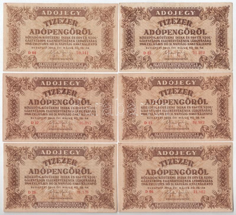 1946. 10.000AP (6x) sorszámos, vízjeles papír T:III az egyiken kis szakadás Adamo P49<a href="https://www.darabanth.com/hu/gyorsarveres/417/kategoriak~Numizmatika/Magyar-bankjegyek~2000007/1946-10000AP-6x-sorszamos-vizjeles-papir-TIII-az-egyiken-kis
