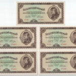 1946. 100.000.000P (5x) sorszámkövetők ‘P 121 074686 – P 121 074690’ T:AU / Hungary 1946. 100.000.000 Pengő (5x) consecutive serials ‘P 121 074686 – P 121 074690’ C:AU Adamo P27<a href="https://www.darabanth.com/hu/nagyaukcio/40/kategoriak~Numizmati