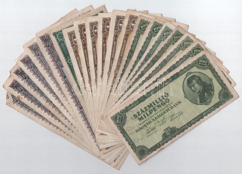 1946. 100.000MP-100.000.000MP (20db) T:III,III- Adamo P12<a href="https://www.darabanth.com/hu/gyorsarveres/423/kategoriak~Numizmatika/Magyar-bankjegyek~6000007/1946-100000MP-100000000MP-20db-TIII-III-Adamo-P12~II2688752/?utm_source=affiliate&utm_me