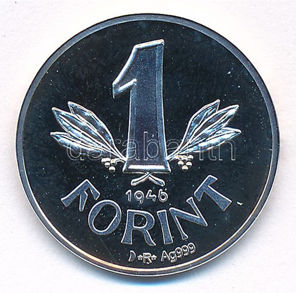 1946. 1Ft Ag jelzett utánveret ‘R’ jelzéssel kapszulában (4g/0.999) T:PP<a href="https://www.darabanth.com/hu/gyorsarveres/421/kategoriak~Numizmatika/Magyar-es-magyar-verdejelu-fem-es-ezustpenzek~3000022/1946-1Ft-Ag-jelzett-utanveret-R-jelzessel-kap