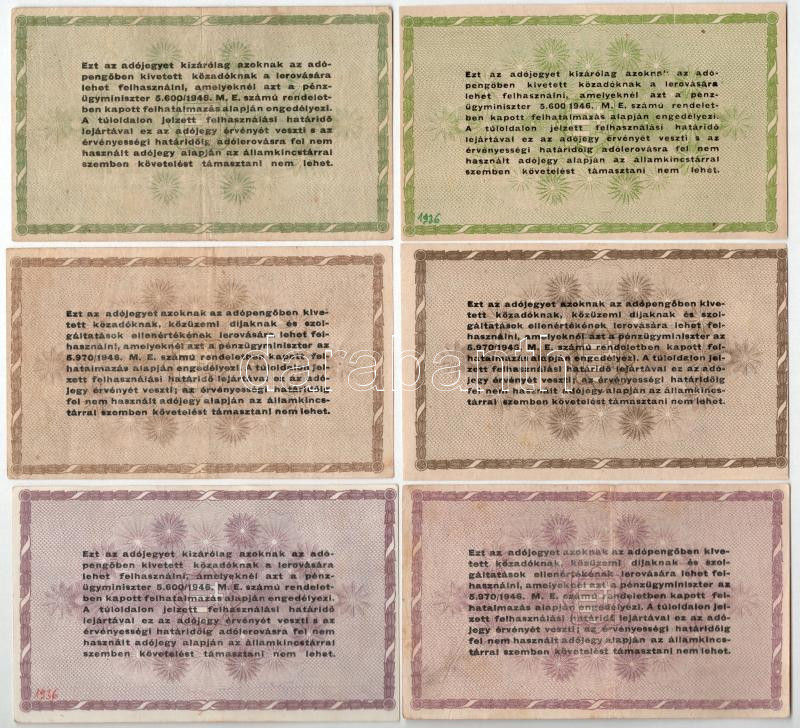 1946. 6db-os adópengő tétel T:II–III<a href="https://www.darabanth.com/hu/gyorsarveres/436/kategoriak~Numizmatika/Magyar-bankjegyek~1500007/1946-6db-os-adopengo-tetel-TII-III~II2834933/?utm_source=affiliate&utm_medium=mutargy&utm_campaign=allando"