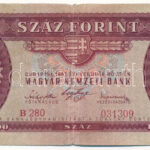 1947. 100Ft ‘B 280 031309’ T:F kis sarokhiány, apró szakadás Adamo F27<a href="https://www.darabanth.com/hu/gyorsarveres/440/kategoriak~Numizmatika/Magyar-bankjegyek~1500007/1947-100Ft-B-280-031309-TF-kis-sarokhiany-apro-szakadas-Adamo-F27~II2887178