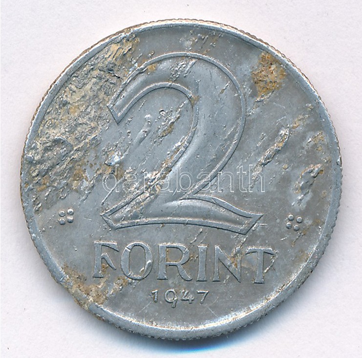 1947. 2Ft Al T:3 anyaghiba, ph. Adamo F7<a href="https://www.darabanth.com/hu/gyorsarveres/417/kategoriak~Numizmatika/Magyar-es-magyar-verdejelu-fem-es-ezustpenzek~2000008/1947-2Ft-Al-T3-anyaghiba-ph-Adamo-F7~II2626108/?utm_source=affiliate&utm_medi