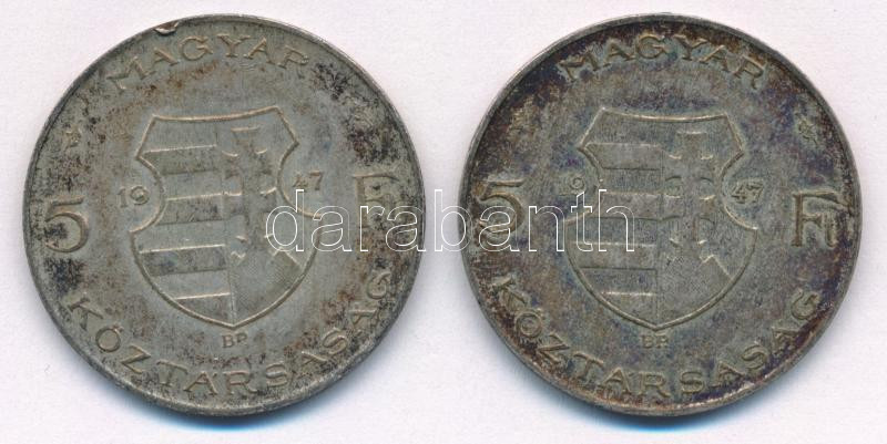 1947. 5Ft Ag ‘Kossuth’ (2x) T:2- patina Adamo F8.1<a href="https://www.darabanth.com/hu/gyorsarveres/436/kategoriak~Numizmatika/Magyar-es-magyar-verdejelu-fem-es-ezustpenzek~1500008/1947-5Ft-Ag-Kossuth-2x-T2-patina-Adamo-F81~II2828603/?utm_source=af