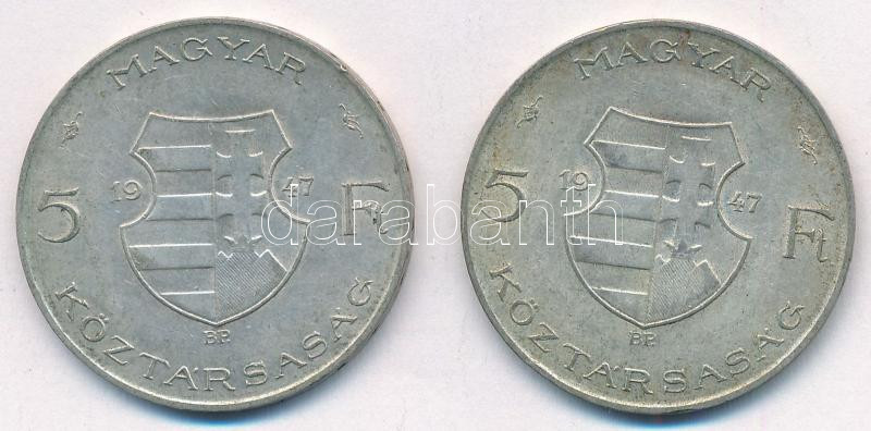 1947. 5Ft Ag ‘Kossuth’ (2x) T:XF patina Adamo F8.1<a href="https://www.darabanth.com/hu/gyorsarveres/438/kategoriak~Numizmatika/Magyar-es-magyar-verdejelu-fem-es-ezustpenzek~1500008/1947-5Ft-Ag-Kossuth-2x-TXF-patina-Adamo-F81~II2869031/?utm_source=a