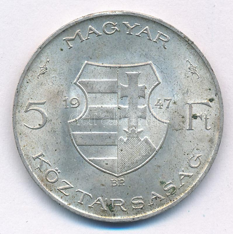 1947. 5Ft Ag ‘Kossuth’ T:1- patina Adamo F8.1<a href="https://www.darabanth.com/hu/gyorsarveres/417/kategoriak~Numizmatika/Magyar-es-magyar-verdejelu-fem-es-ezustpenzek~2000008/1947-5Ft-Ag-Kossuth-T1-patina-Adamo-F81~II2626578/?utm_source=affiliate&