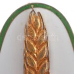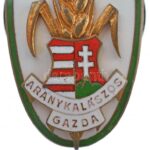 ~1947. ‘Aranykalászos Gazda’ Tildy-címeres zománcozott bronz jelvény, csavaros hátlap, ‘CEGLÉD 25’ gravírozással (46x24mm) T:1-,2 ph. / Hungary ~1947. ‘Aranykalászos Gazda’ enamelled screwback bronze badge with Tildy coat of arms, engraved on backside ‘CE