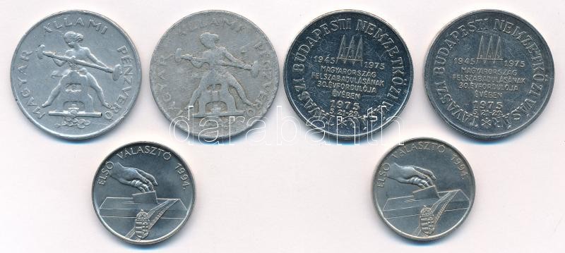 1948. június 11. ‘Magyar Állami Pénzverő – Budapesti Nemzetközi Vásár’ (2x) kétoldalas Al emlékérem (32mm) + 1975. ‘Hungexpo / Budapesti Tavaszi Nemzetközi Vásár’ (2x) kétoldalas fém emlékérem (32mm) + 1994. ‘Első választó’ (2x)