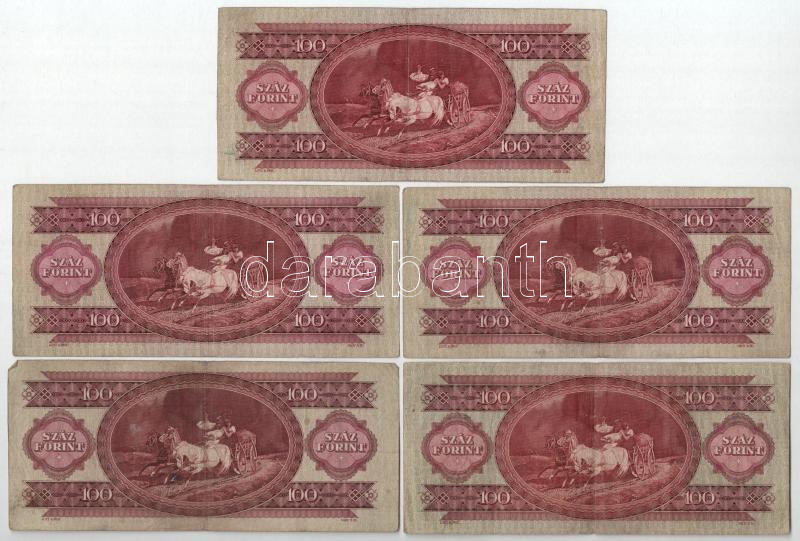 1949. 100Ft (5x) T:III,III- Adamo F28<a href="https://www.darabanth.com/hu/gyorsarveres/439/kategoriak~Numizmatika/Magyar-bankjegyek~500007/1949-100Ft-5x-TIII-III-Adamo-F28~II2712348/?utm_source=affiliate&utm_medium=mutargy&utm_campaign=allando" tar