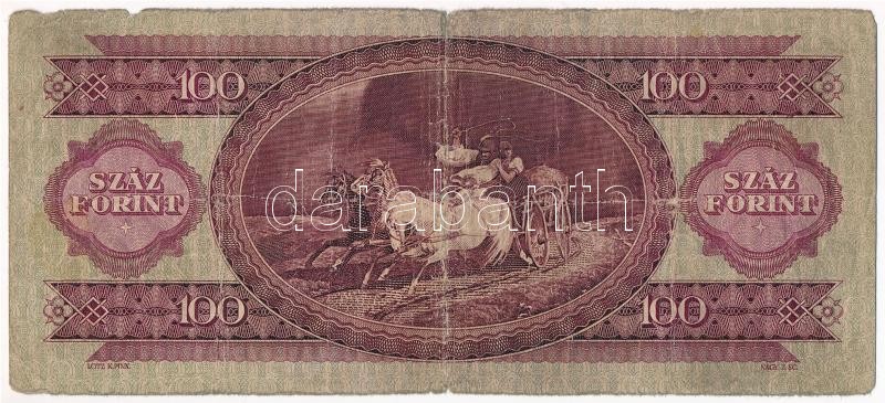 1949. 100Ft ‘B 010 169231’ T:III- Adamo F28<a href="https://www.darabanth.com/hu/gyorsarveres/411/kategoriak~Numizmatika/Magyar-bankjegyek~2000007/1949-100Ft-B-010-169231-TIII-Adamo-F28~II2553229/?utm_source=affiliate&utm_medium=mutargy&utm_campaign