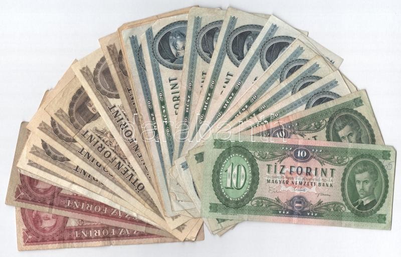 1949-1993. 10Ft-100Ft (26db), közte 1949. 100Ft ‘B 121 008924’ T:III,III-<a href="https://www.darabanth.com/hu/gyorsarveres/423/kategoriak~Numizmatika/Magyar-bankjegyek~6000007/1949-1993-10Ft-100Ft-26db-kozte-1949-100Ft-B-121-008924-TIII-III-~II2690