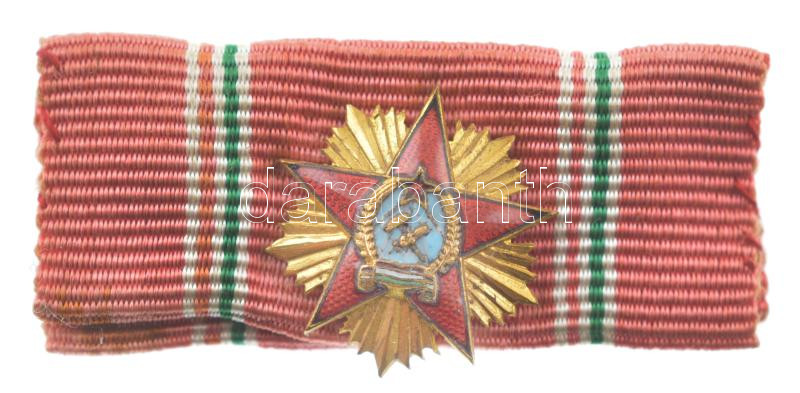 1949. ‘Magyar Népköztársaság Érdemrend’ V. osztályának aranyozott, zománcozott miniatűrje szalagsávon (15mm) T:1 NMK 533.<a href="https://www.darabanth.com/hu/gyorsarveres/433/kategoriak~Numizmatika/Falerisztika-Kituntetesek-jelvenyek~2000003/1949-M