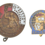 1949. ‘Világ Ifjúsági Kongresszus és Fesztivál – indiai delegáció’ zománcos Cu kitűző angol felirattal (28mm) + ‘Világ Ifjúsági Kongresszus és Fesztivál – Budapest 1949’ zománcos tombak kitűző román nyelvű felirattal (20x20mm)