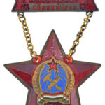 ~1950. ‘Szakma kiváló dolgozója – Könnyűipar’ Rákosi-címeres zománcozott kitüntetés hátlapon ‘45291’ sorszámmal T:1-<a href="https://www.darabanth.com/hu/gyorsarveres/436/kategoriak~Numizmatika/Falerisztika-Kituntetesek-jelvenyek~2500006/7E1950-Szak