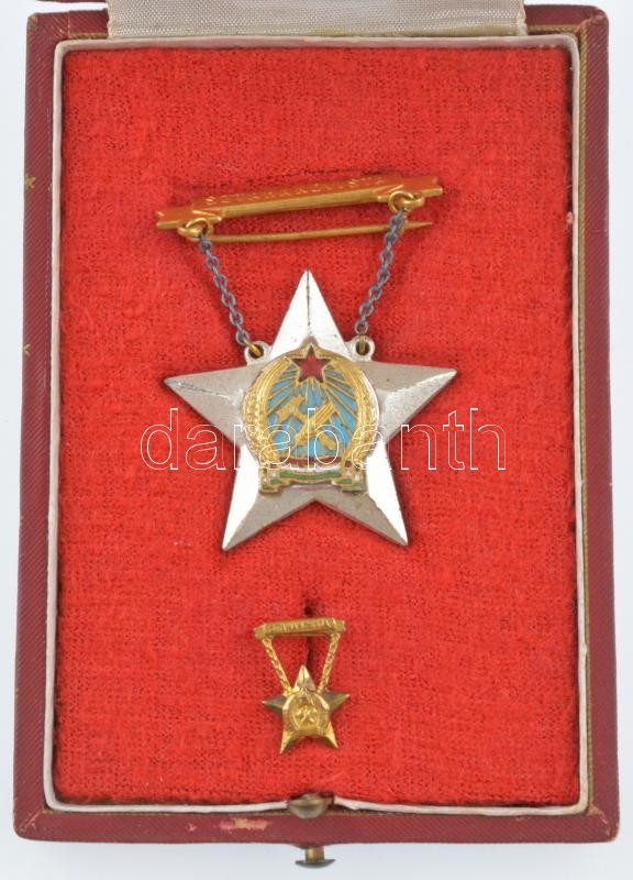 ~1950. ‘Sztahanovista’ arany fokozat, zománcozott fém kitüntetés, miniatűrrel, eredeti tokban T:2,2-<a href="https://www.darabanth.com/hu/gyorsarveres/418/kategoriak~Numizmatika/Falerisztika-Kituntetesek-jelvenyek~2000019/7E1950-Sztahanovista-arany-
