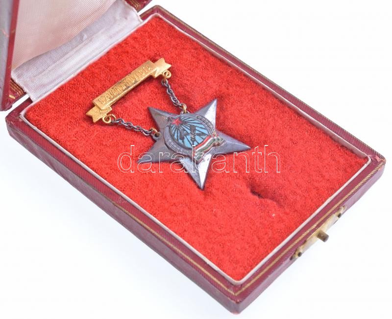 1953. ‘Sztahanovista’ zománcozott fém kitüntetés tokban T:2-<a href="https://www.darabanth.com/hu/gyorsarveres/409/kategoriak~Numizmatika/Falerisztika-Kituntetesek-jelvenyek~2500018/1953-Sztahanovista-zomancozott-fem-kituntetes-tokban-T2-~II2534935/