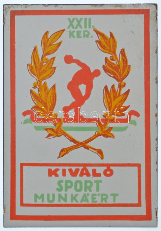 ~1960-1970. ‘XXII. Ker. Kiváló Sport Munkáért’ zománcozott emléktábla (160x110mm) T:2 kis zománckopások<a href="https://www.darabanth.com/hu/gyorsarveres/440/kategoriak~Numizmatika/Sportdijak-es-sport-emlekermek~1500013/7E1960-1970-XXII-Ker-Kivalo-S