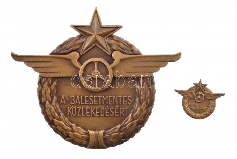 ~1960. ‘A Balesetmentes Közlekedésért’ bronz autóra szerelhető jelvény (97x82mm) + jelvény (24x30mm) T:1-