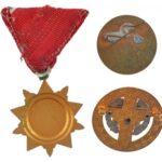 ~1960. ‘Könnyűipar Kiváló Dolgozója’ aranyozott, zománcozott kitüntető jelvény + ‘Az ipari szövetkezet kiváló dolgozója’ aranyozott, zománcozott kitüntető jelvény tű nélkül + 1970. ‘Felszabadulási Jubileumi Emlékérem’ aranyozott, zománcozott bronz kitünte