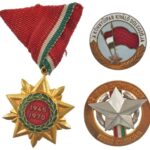 ~1960. ‘Könnyűipar Kiváló Dolgozója’ aranyozott, zománcozott kitüntető jelvény + ‘Az ipari szövetkezet kiváló dolgozója’ aranyozott, zománcozott kitüntető jelvény tű nélkül + 1970. ‘Felszabadulási Jubileumi Emlékérem’ aranyozott, zománcozott bronz kitünte