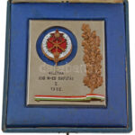 1962. ‘Hadsereg Bajnokság – Atlétika 200m-es síkfutás II.’ részben zománcozott bronz rátétes 1961-es évszámos jelvénnyel, krómozott fém díjplakett eredeti dobozban (102x92mm) T:2 zománchiány, restaurálva